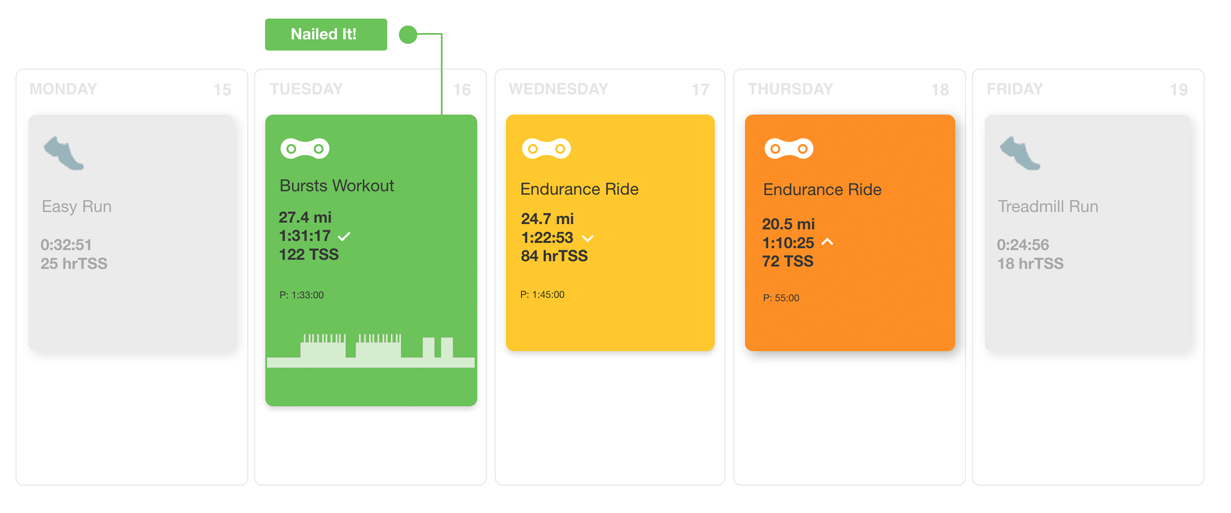 Las tarjetas de ejercicios codificadas por colores muestran exactamente lo cerca que estás de completar cada entrenamiento con solo un vistazo, siendo una motivación extra conseguir la premiada tarjeta verde.